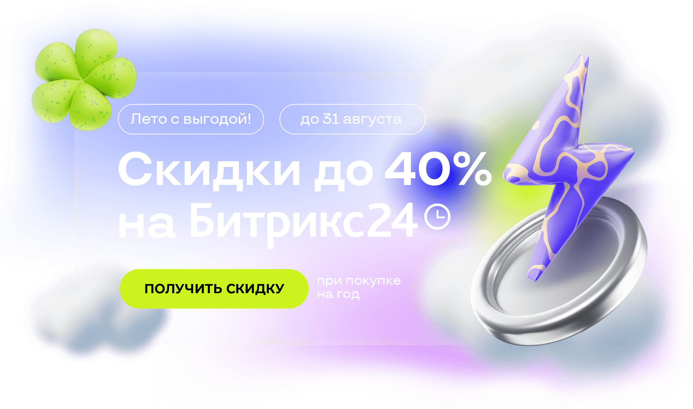 Хотите повысить текущий тариф? Или впервые приобрести Битрикс24? Сделайте это сейчас со скидкой 35% и получите больше возможностей Битрикс24 на целый год. Подробные условия акции вы можете найти здесь.